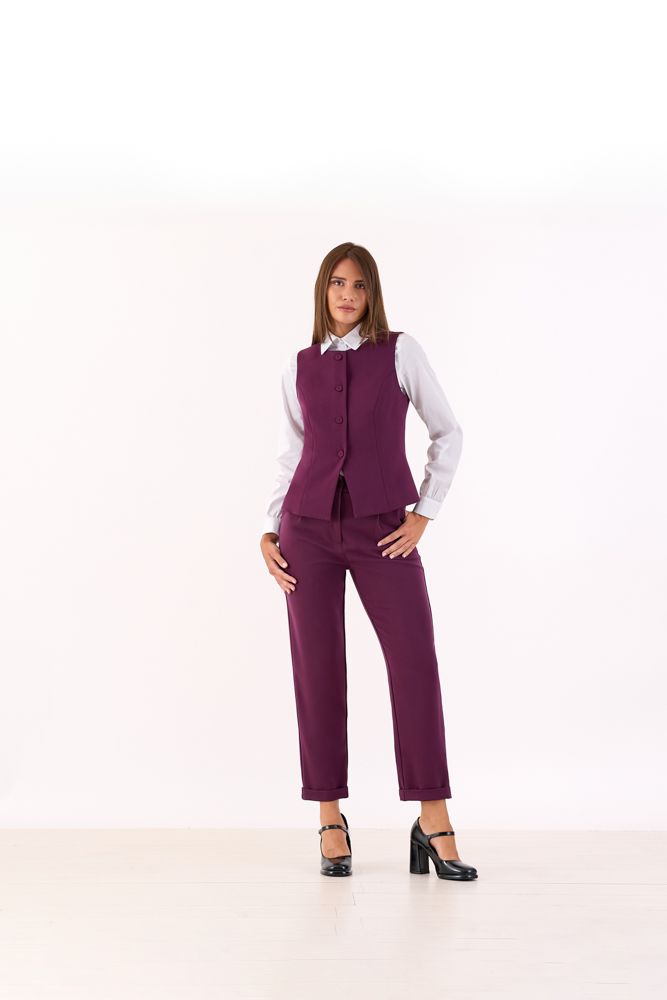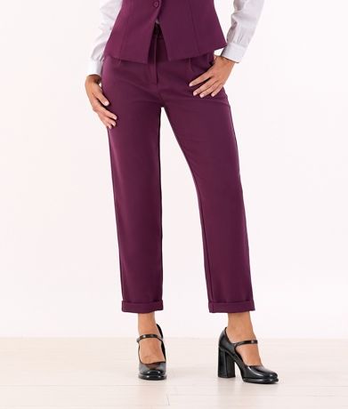 Bordeaux farbene Stoffhose in Kurzlänge mit leichtem Umschlag am Beinende