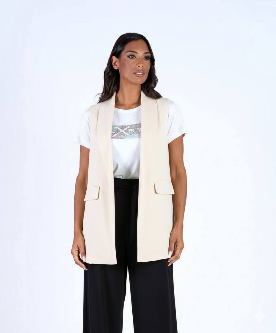 Offen fallendes Gilet in hochwertiger Stoffausführung aus 90% Naturfaser