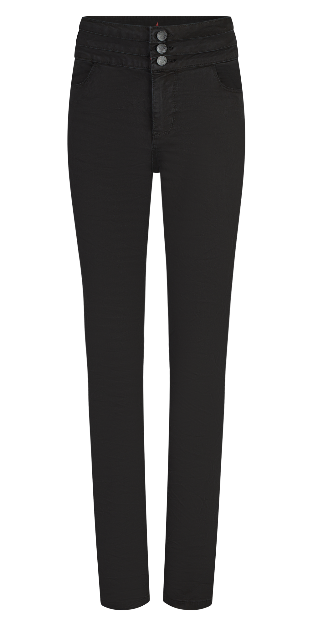 Die Jeans ist tiefschwarz und ein echter Hingucker