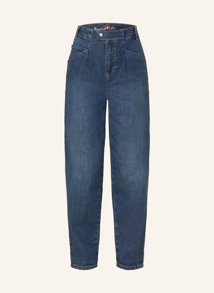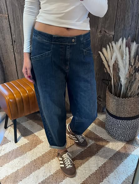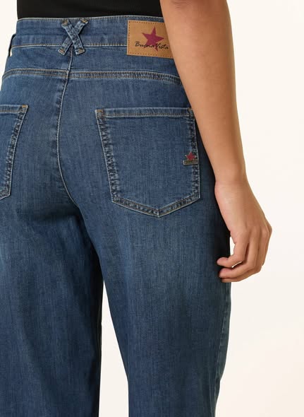 Die beliebte Mom Jeans ist hochgeschnitten mit Zip Verschluss