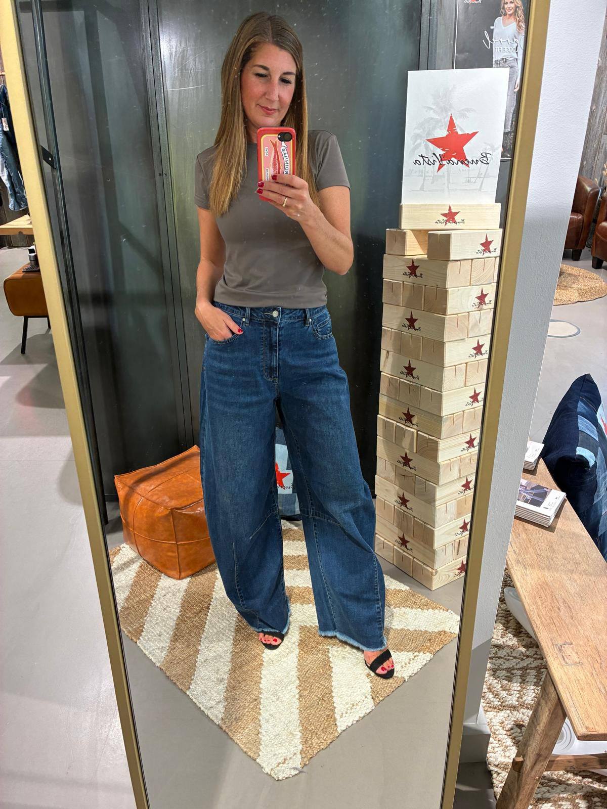 Locker an Hüfteund Oberschenkel mit leicht zulaufenden Bein