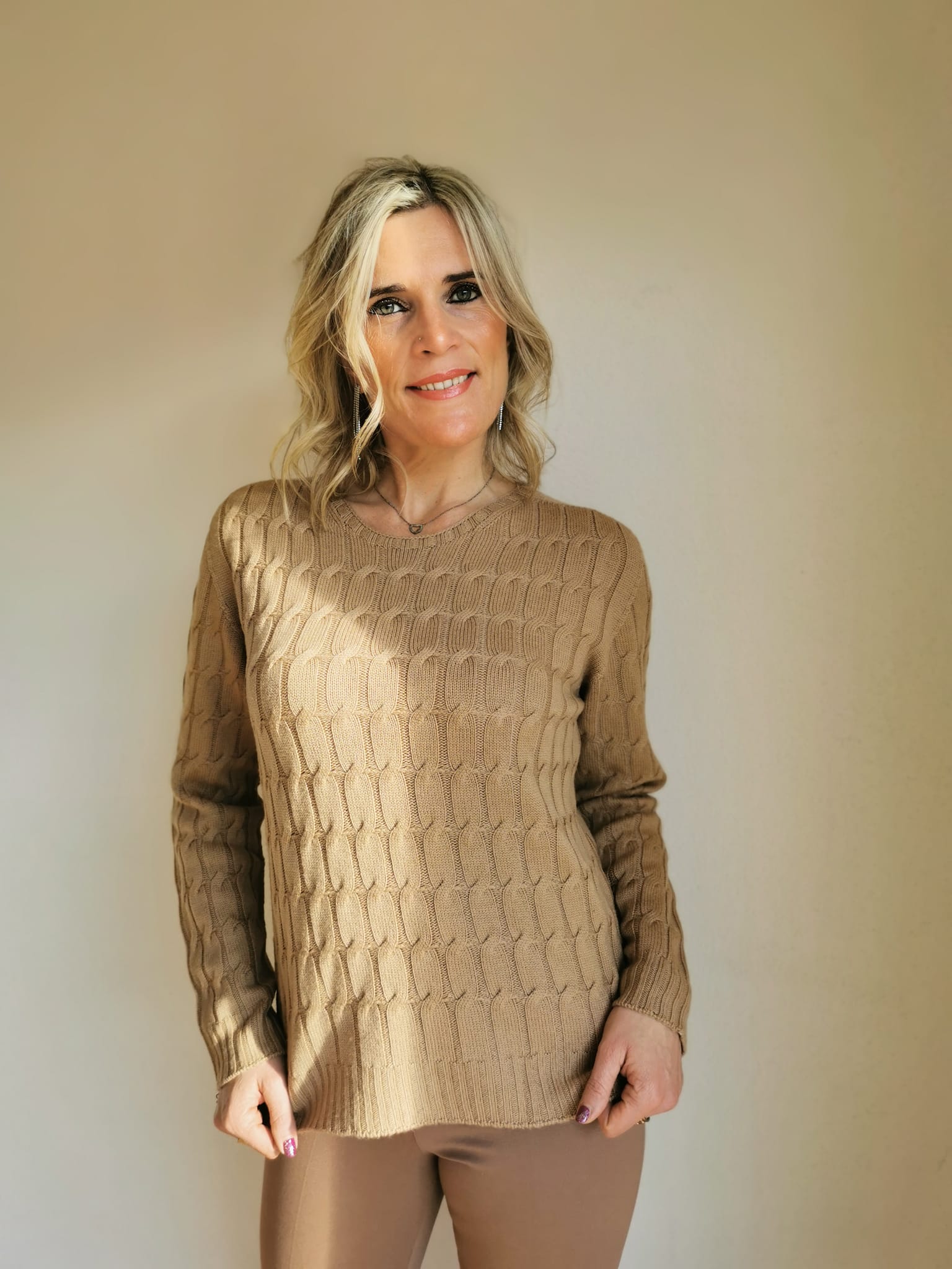 Strickpullover in Zopfmuster mit Rundausschnitt lockeren Abschlußbündchen 100% Merino... mehr